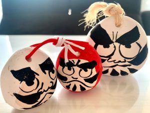 大きい土鈴は赤いだるまが売り切れだったので白をいただきました