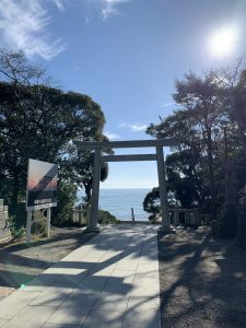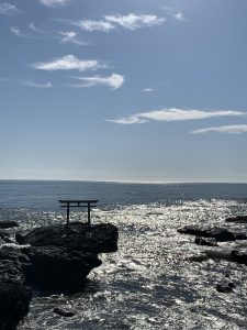 階段を降りると目の前に広がる太平洋に立つ鳥居があります