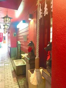 路地裏にありながらファンが多い有名なお稲荷さんです