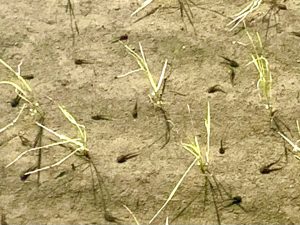田植えの後の田んぼにオタマジャクシがいっぱいだ~