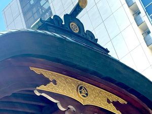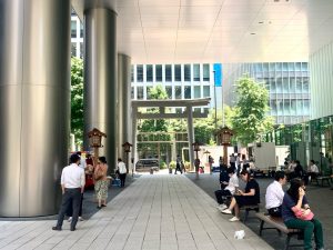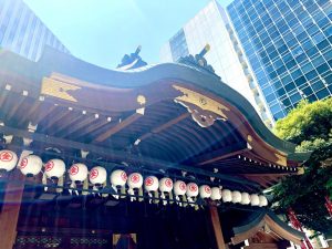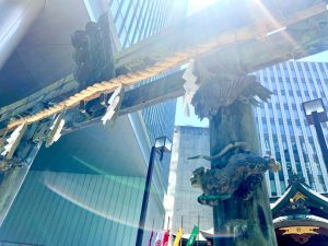 すごいのは近代的な都会の景色と神社が融合していることです