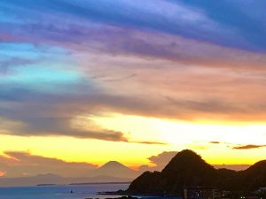 房総の海と夕焼けと富士山のきれいな写真撮れてご満悦