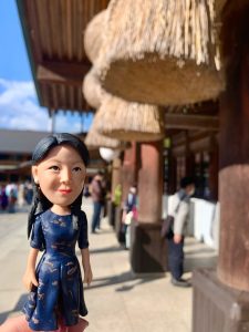 ↓出雲大社のうさぎさんに紛れるめいなさん