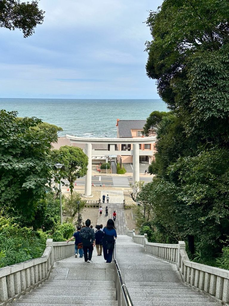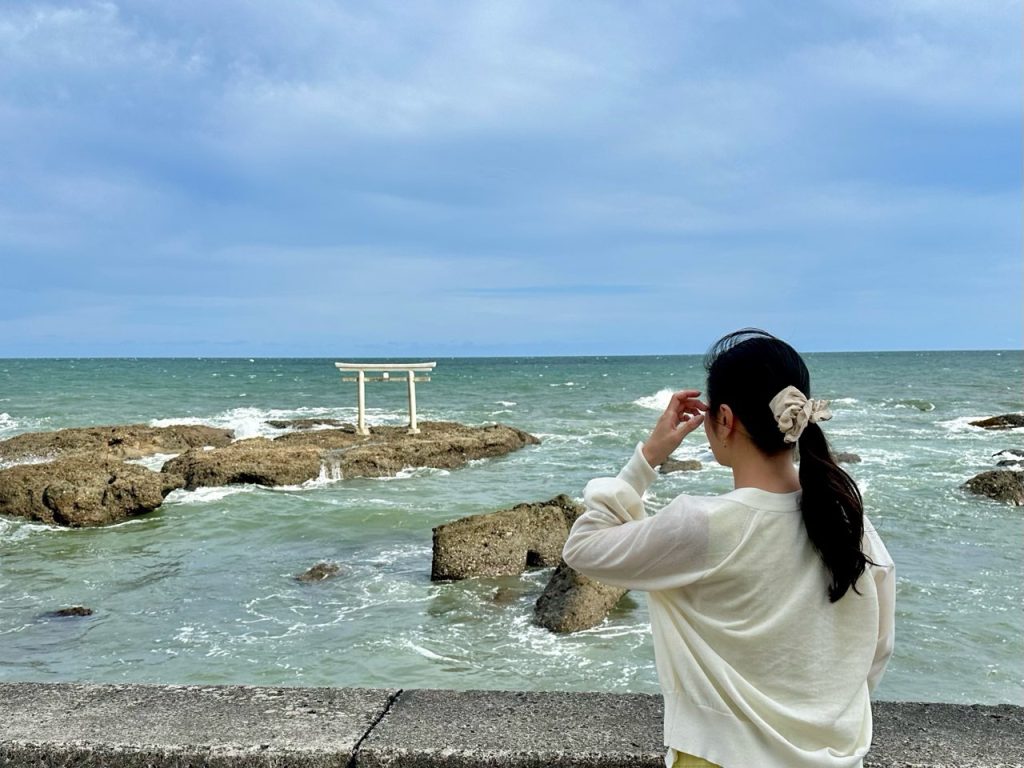 海と白い鳥居の眺めは、なんていうか、絵画のようで好きです。